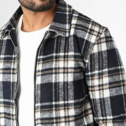 Tout neuf ⌛ Surchemise Zippée A Carreaux HP0668 Bleu Marine Blanc Beige de Frilivin 🎁