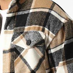 Bon marché ✔️ Surchemise A Carreaux HP03216 Beige Gris de Frilivin 🔔