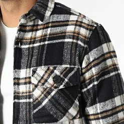 Acheter 🔔 Surchemise A Carreaux HP03219 Beige Bleu Marine de Frilivin 🥰