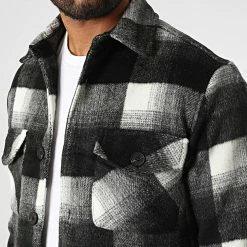 Vente flash 🌟 Surchemise Carreaux HP03235 Noir Blanc de Frilivin 🎉