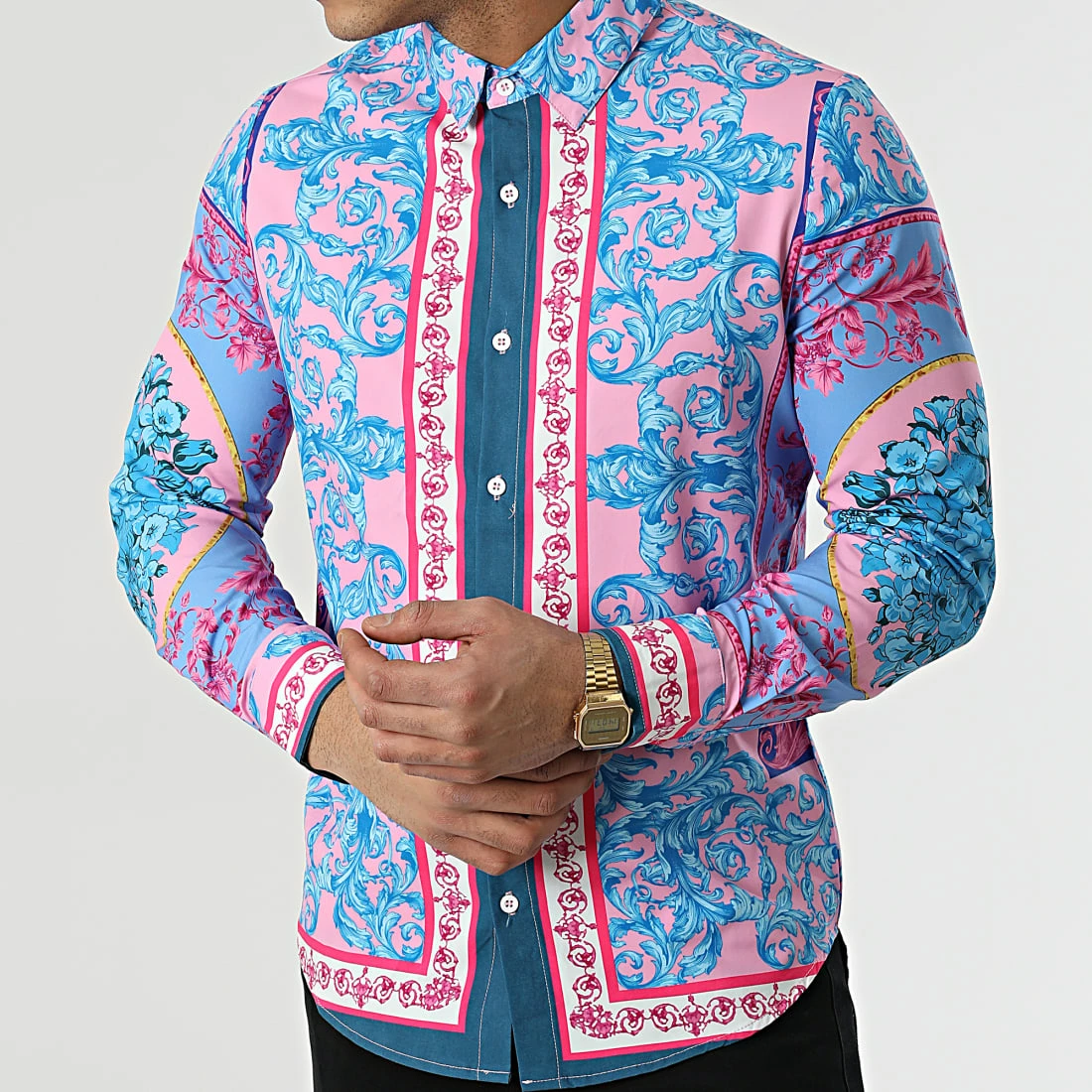 Le moins cher 👍 Chemise Manches Longues Renaissance BM1276 Bleu Clair Rose de Frilivin ✔️