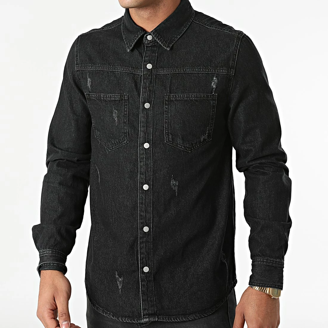 • Chemise cintrée à col classique avec finition usée