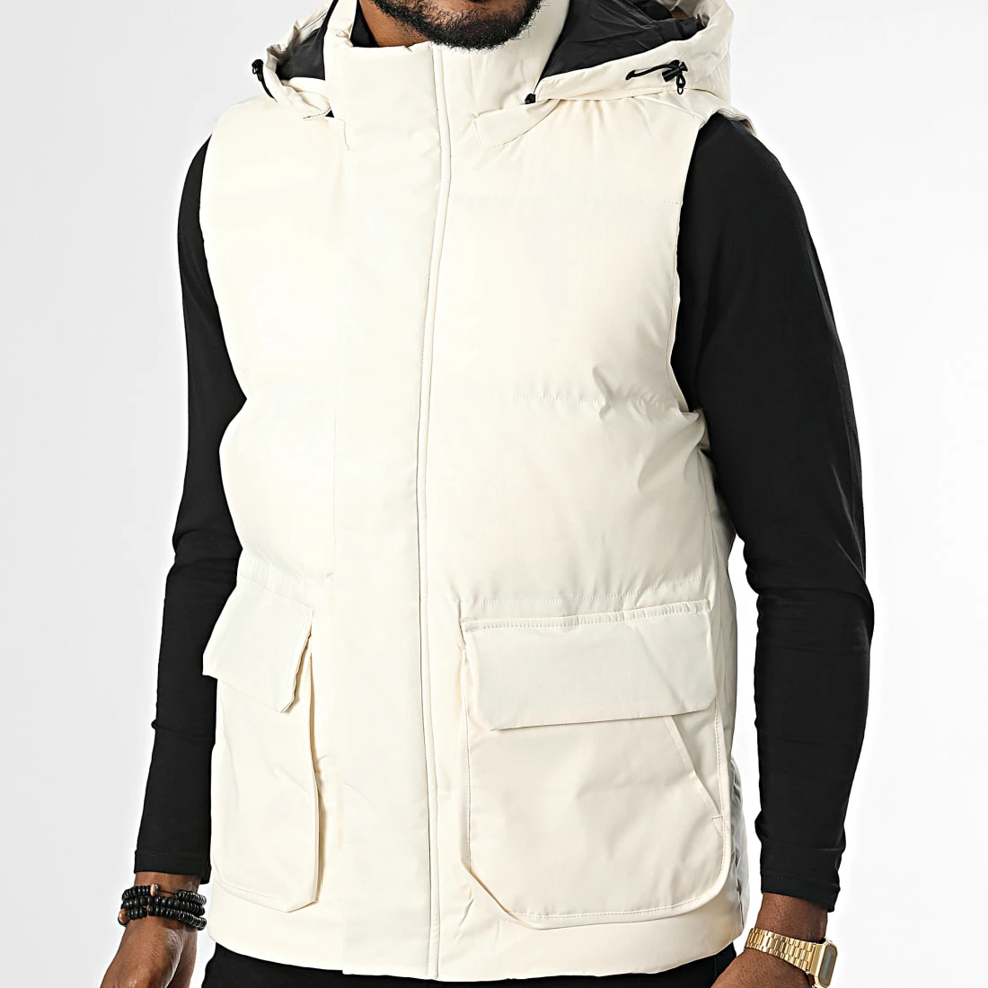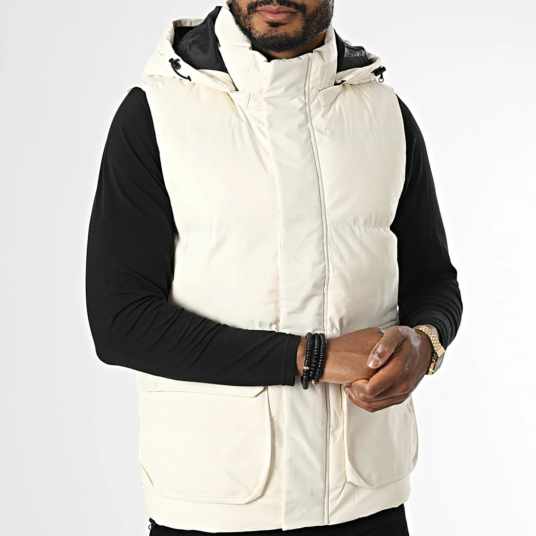 Grosses soldes 🎉 Doudoune Capuche Sans Manches AB672C Beige Clair de Frilivin 😀