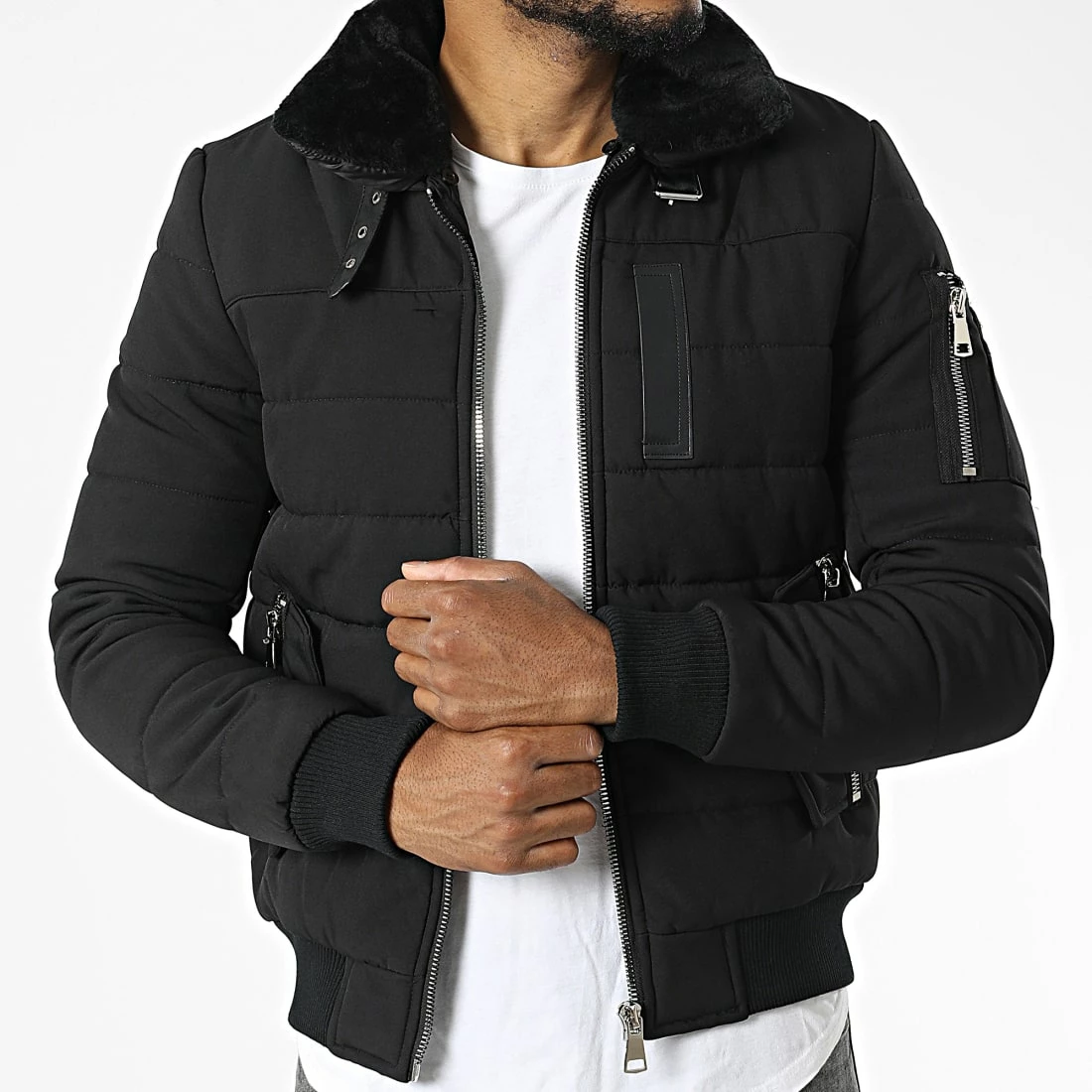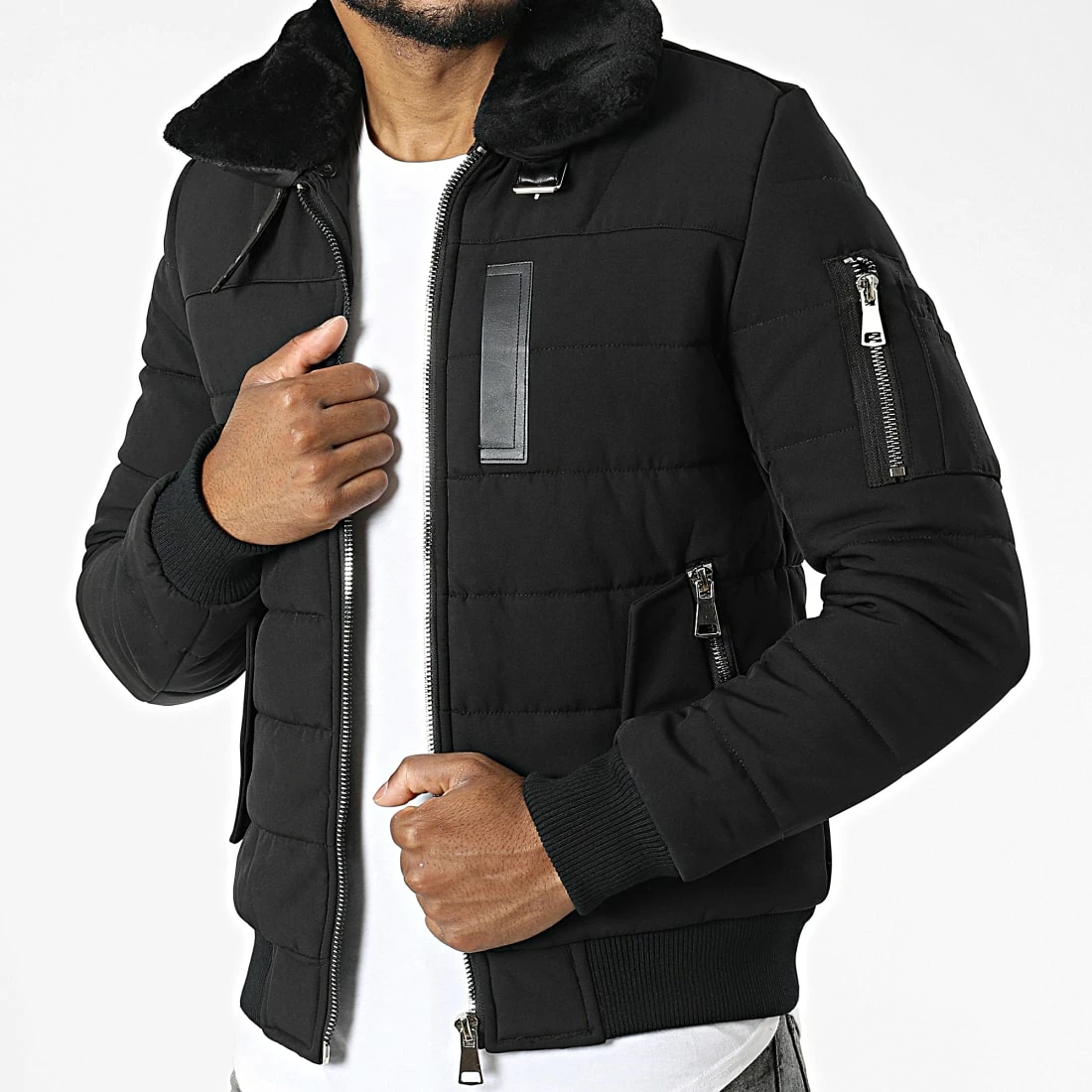 Vente flash ⭐ Doudoune Col Fourrure AB6608 Noir de Frilivin 🎉