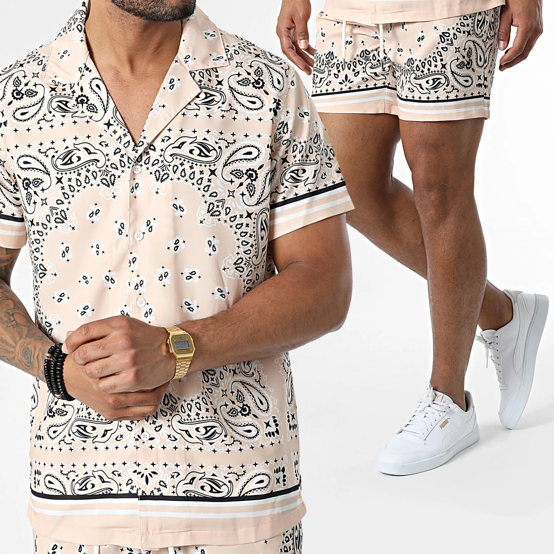 • Ensemble chemise et short jogging tendance avec motif bandana all over