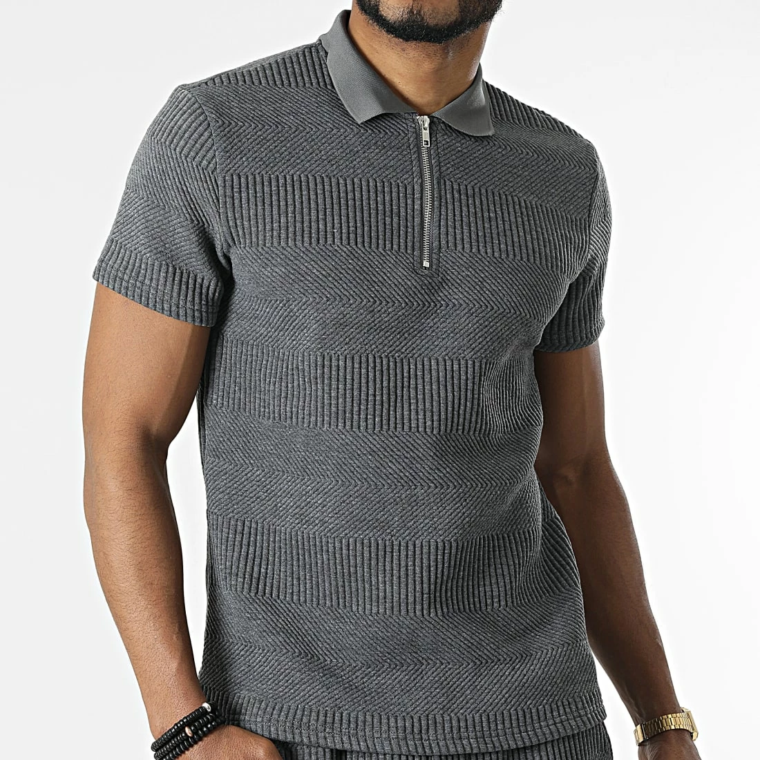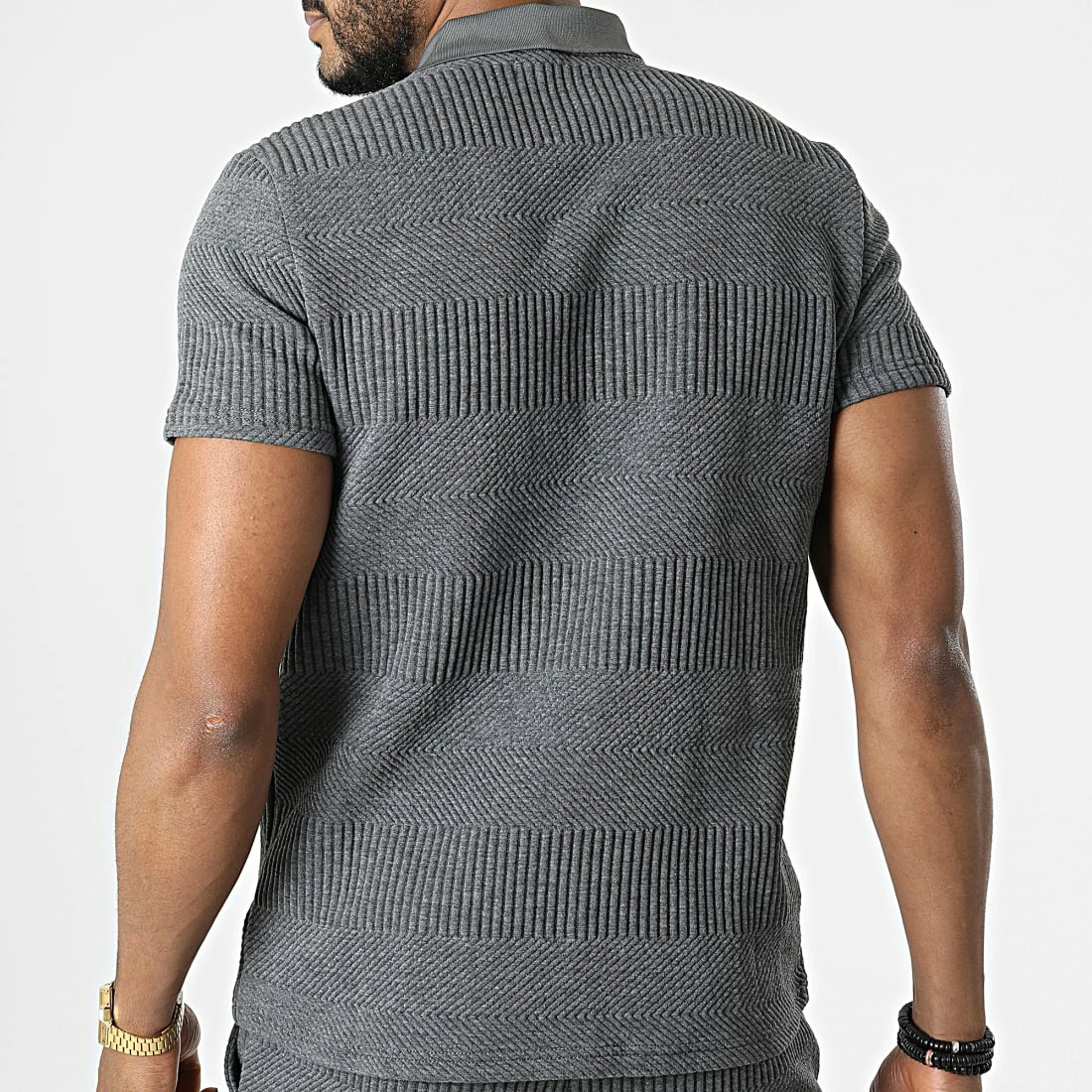• Ensemble polo manches courtes et short jogging en tissu stretch épais et texturé