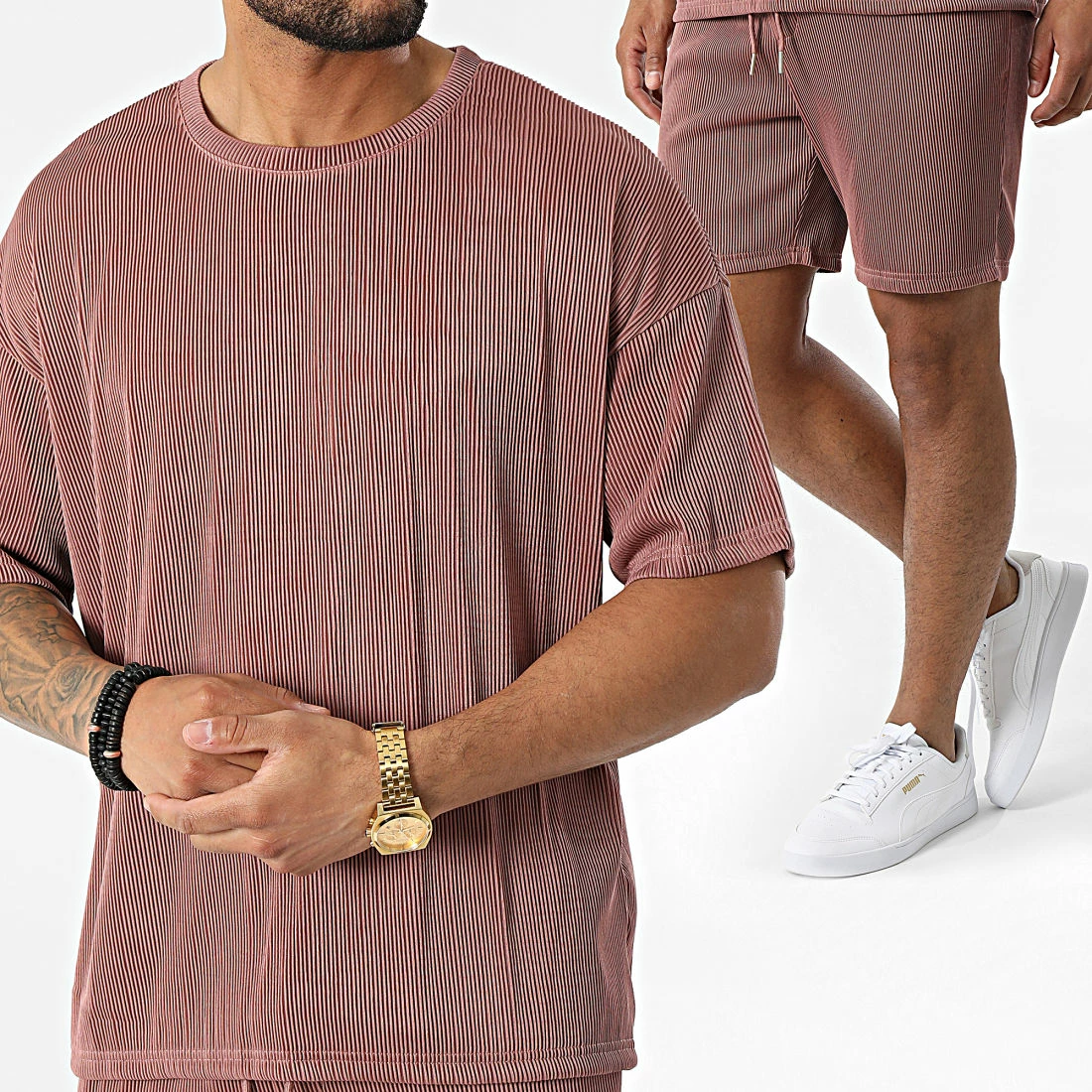 • Ensemble tee shirt et short jogging tendance texturé