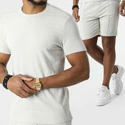 Le moins cher 🤩 Ensemble Tee 👕 Shirt Et Short Jogging BM1525 Beige de Frilivin 👍