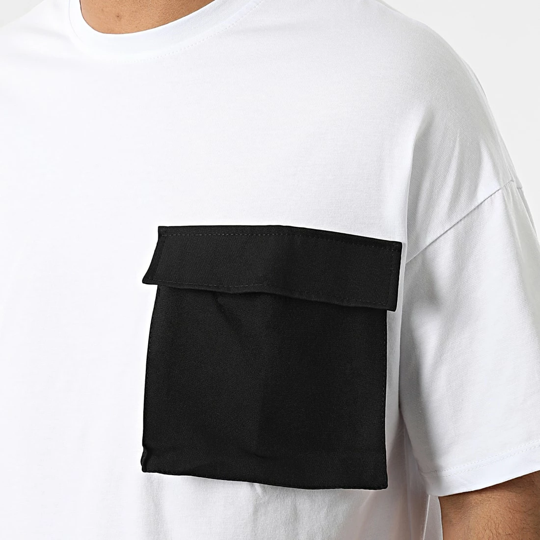Promo 💯 Ensemble Tee 👕 Shirt Poche Jogger Pant 5772 Blanc Noir de Frilivin 🎁