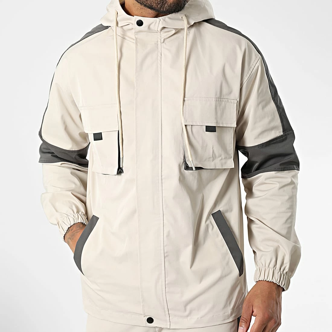 Sortie ⭐ Ensemble Veste Zippée Capuche Et Jogger Pant BM1633 Beige de Frilivin ❤️
