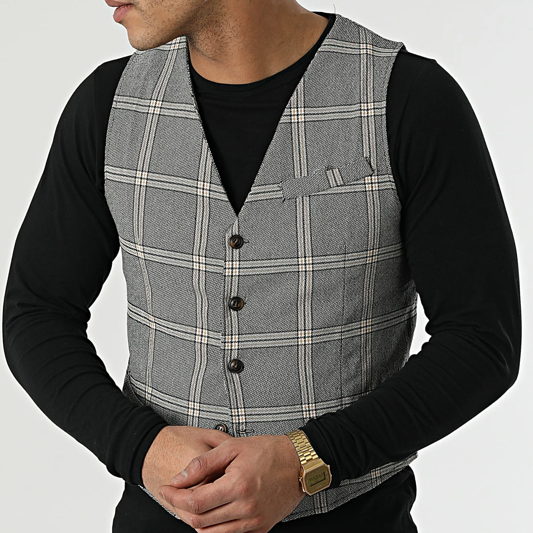 • Gilet tendance avec motif à carreaux brodé dans la maille