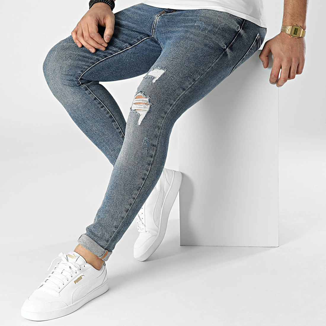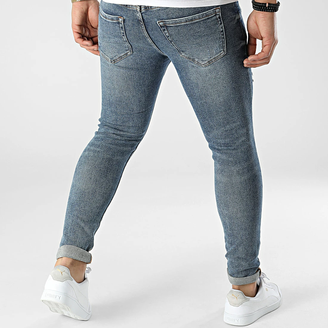 • Jean tendance finition délavée et usée avec trous apparents