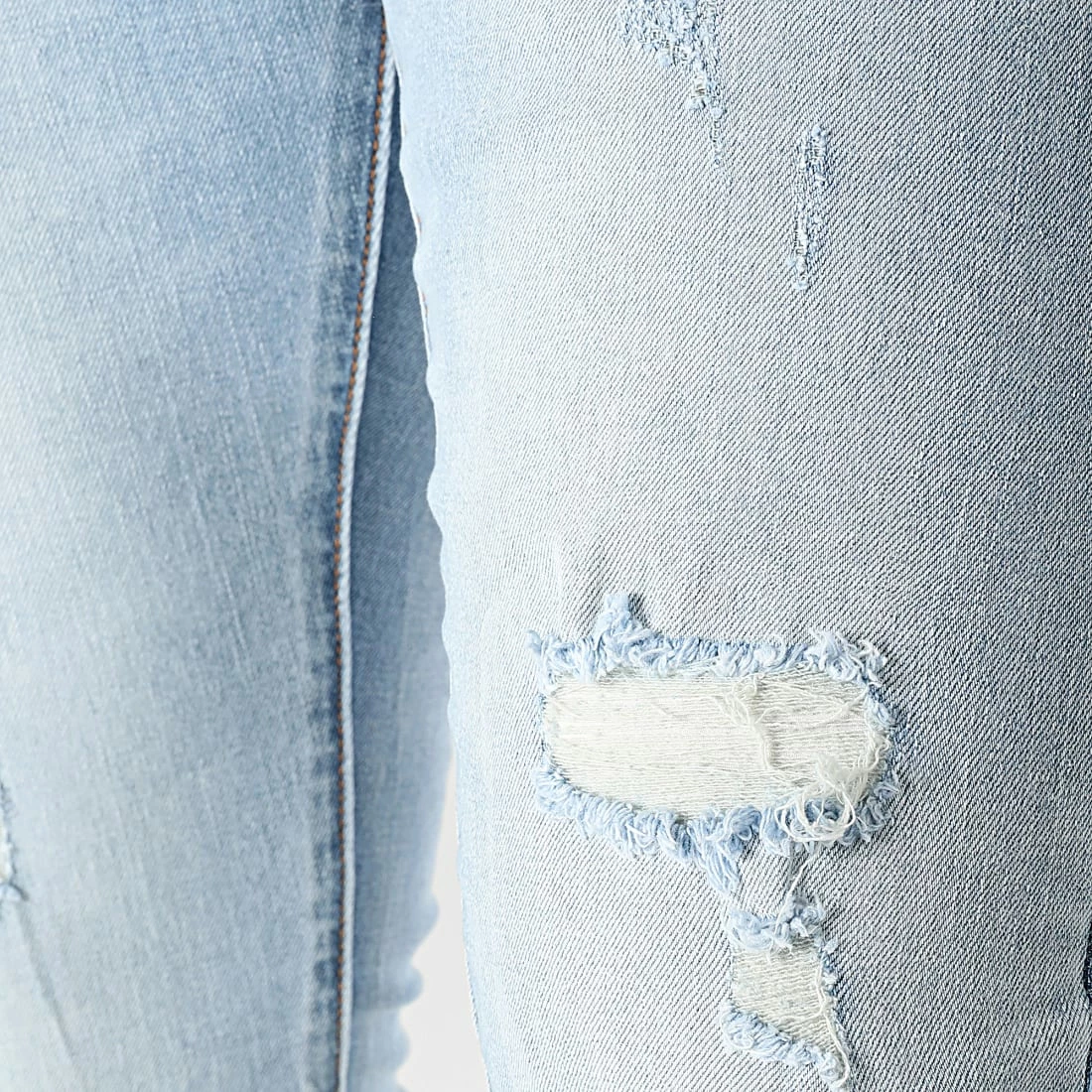 • Jean tendance finition délavée et usée avec rapiéçages