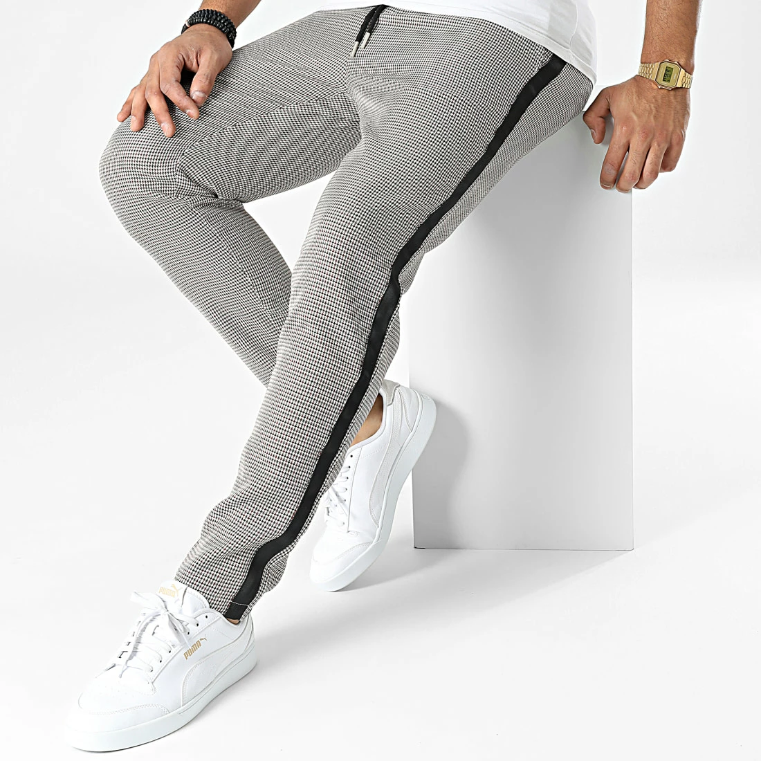 Budget ⌛ Pantalon A Carreaux BM1673 Blanc Beige Marron de Frilivin 🌟