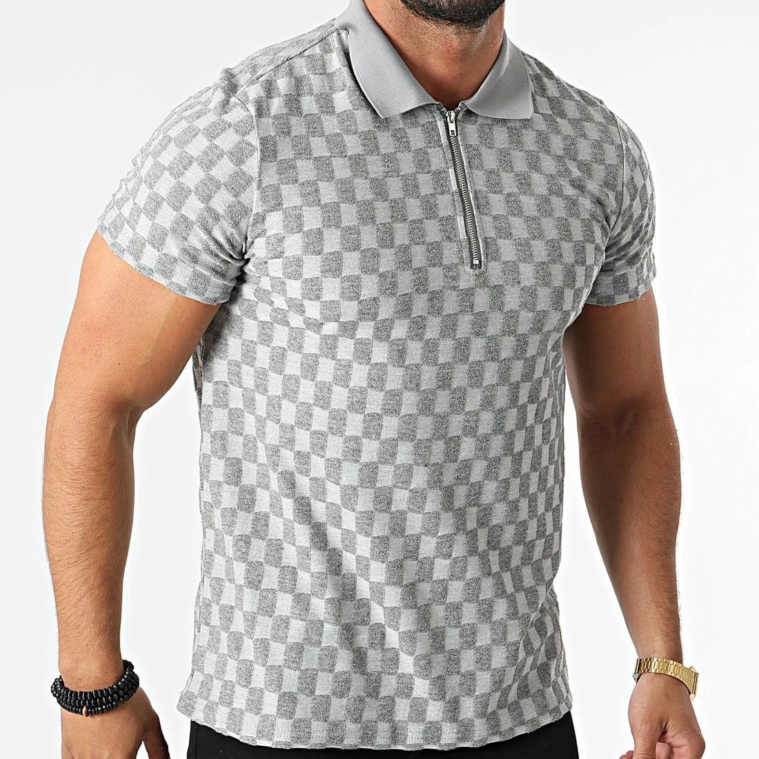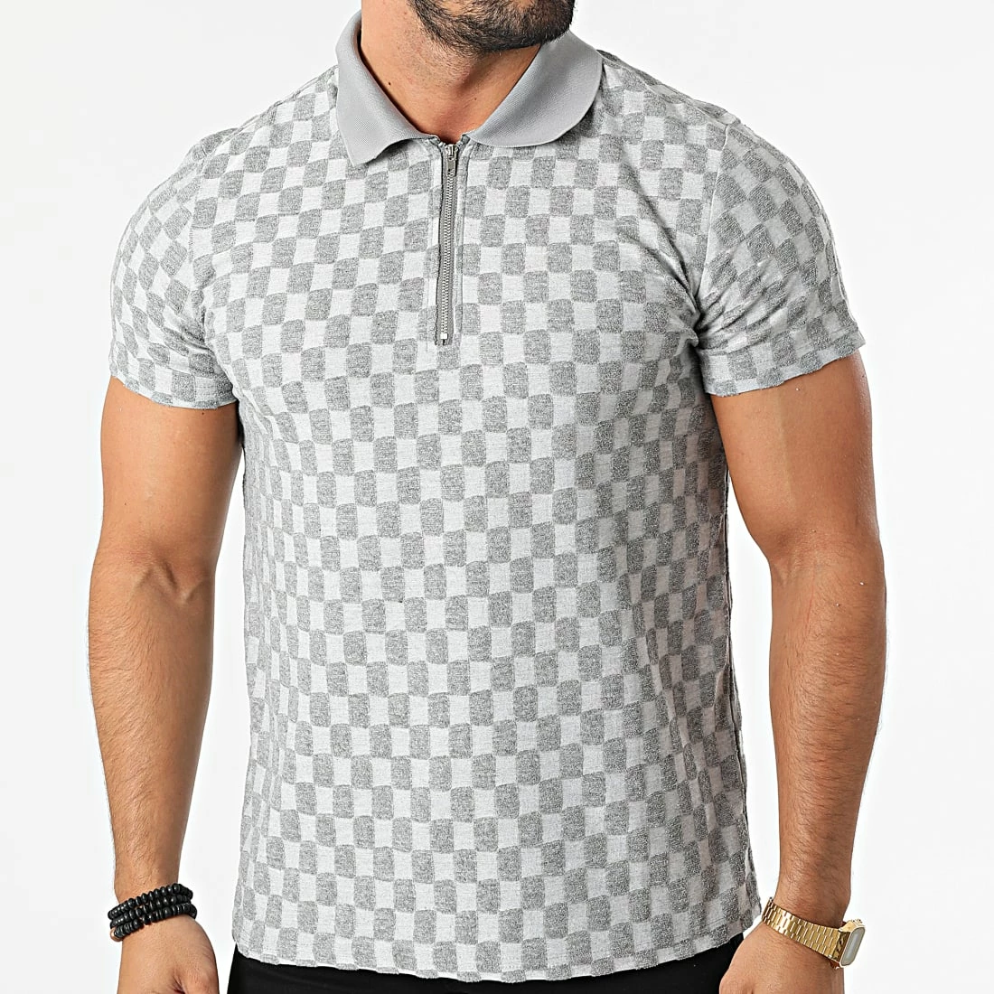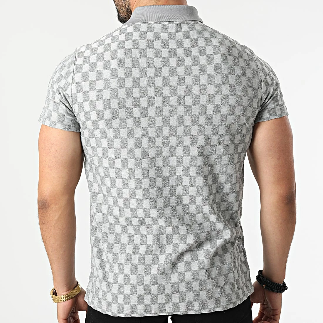 • Polo à manches courtes tendance avec motif à carreaux brodé