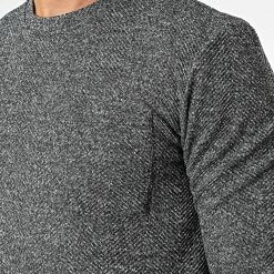 Meilleur prix ⭐ Tee 👕 Shirt Manches Longues Poche D7150 Gris Anthracite Chiné de Frilivin ✨