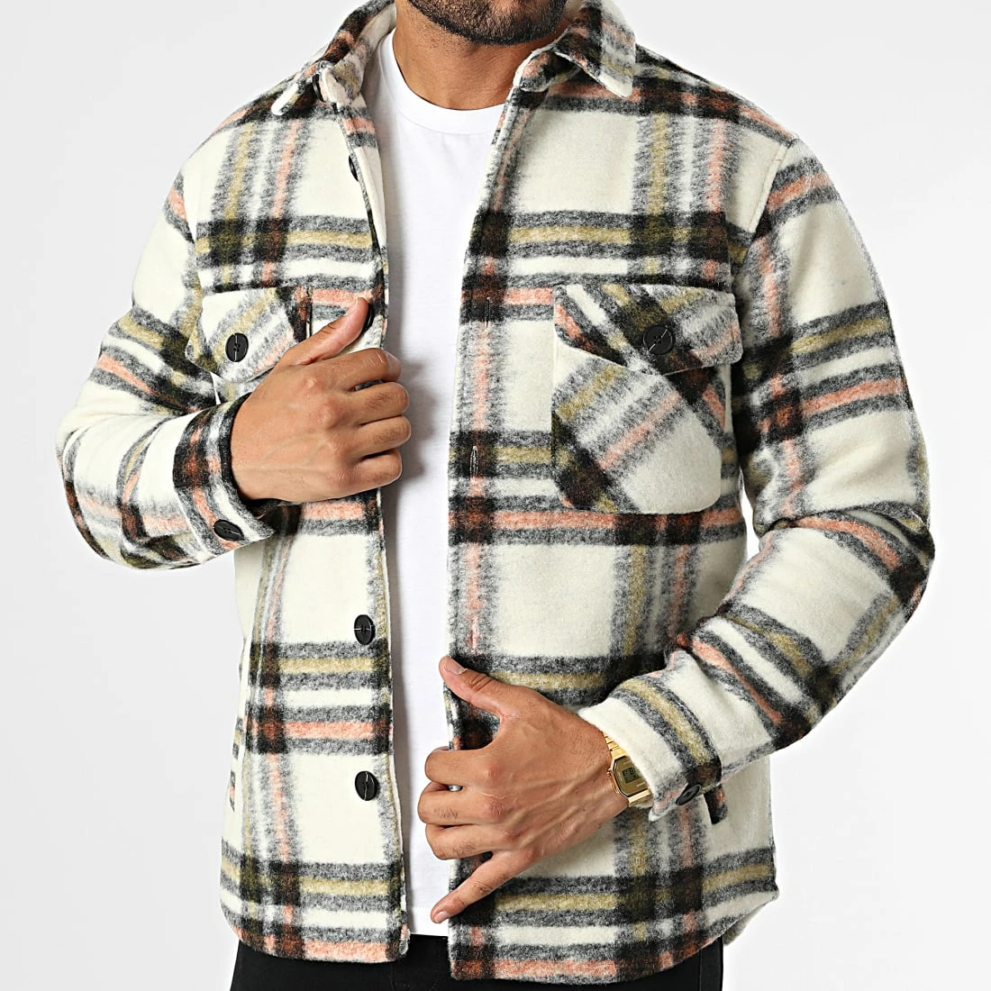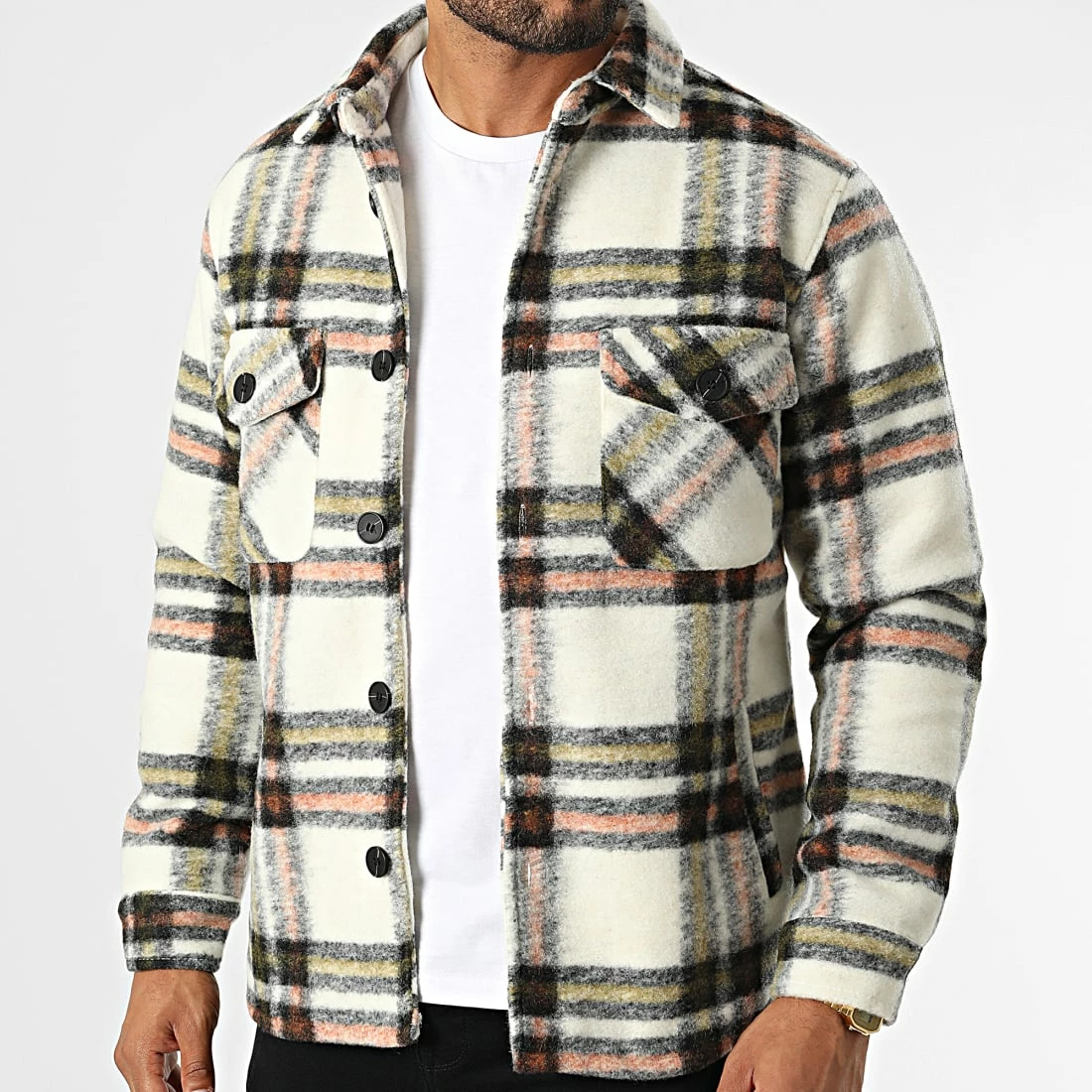 De gros ⭐ Surchemise Carreaux HP03234 Beige Clair de Frilivin ✨