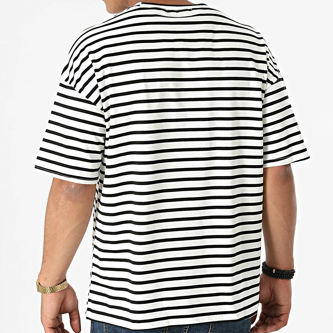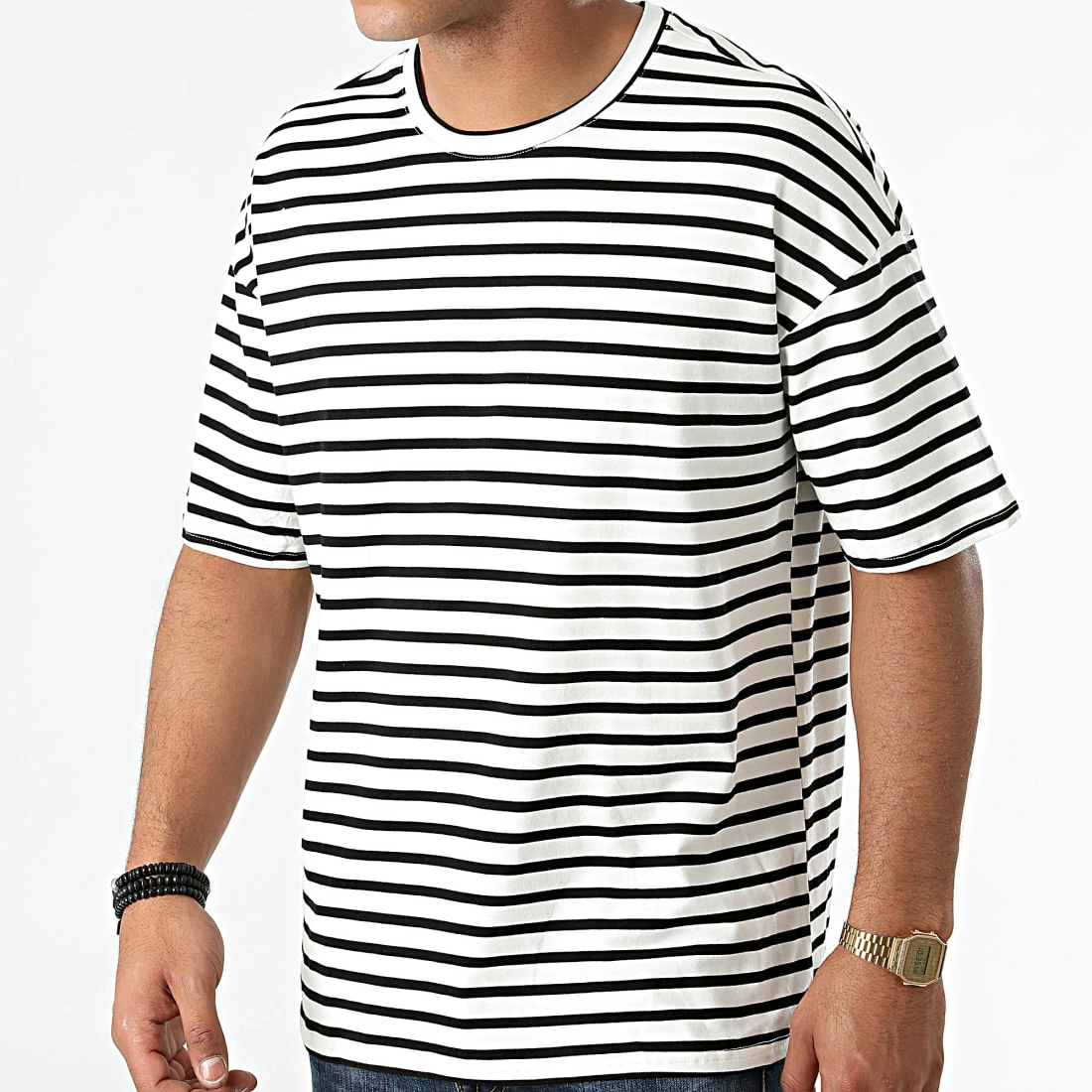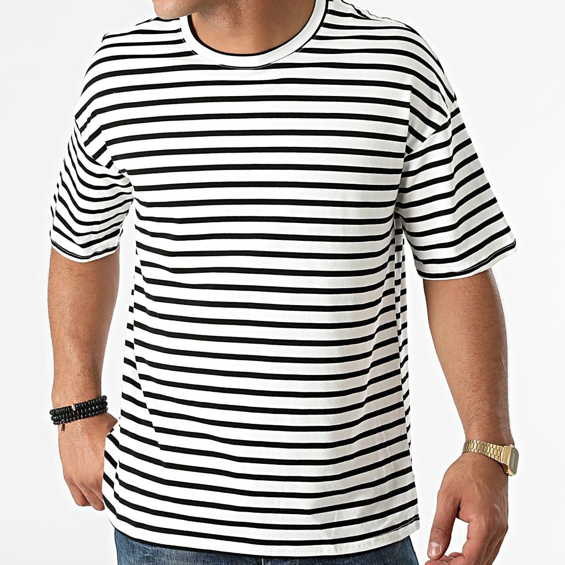 Meilleur prix 🤩 Tee 👕 Shirt A Rayures BM1333 Blanc Noir de Frilivin 😍