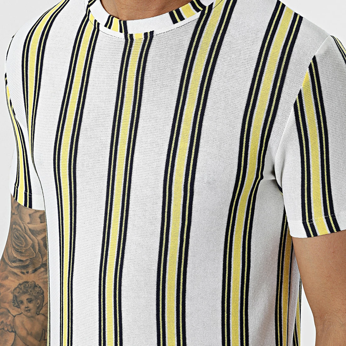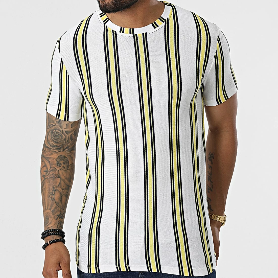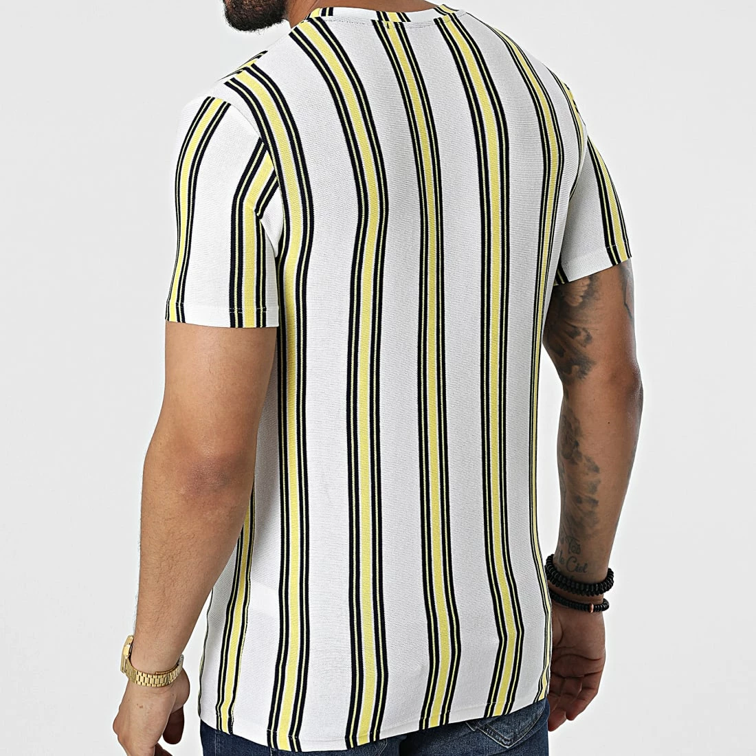 Acheter 😀 Tee 👚 Shirt A Rayures FL002 Blanc Jaune de Frilivin 😉