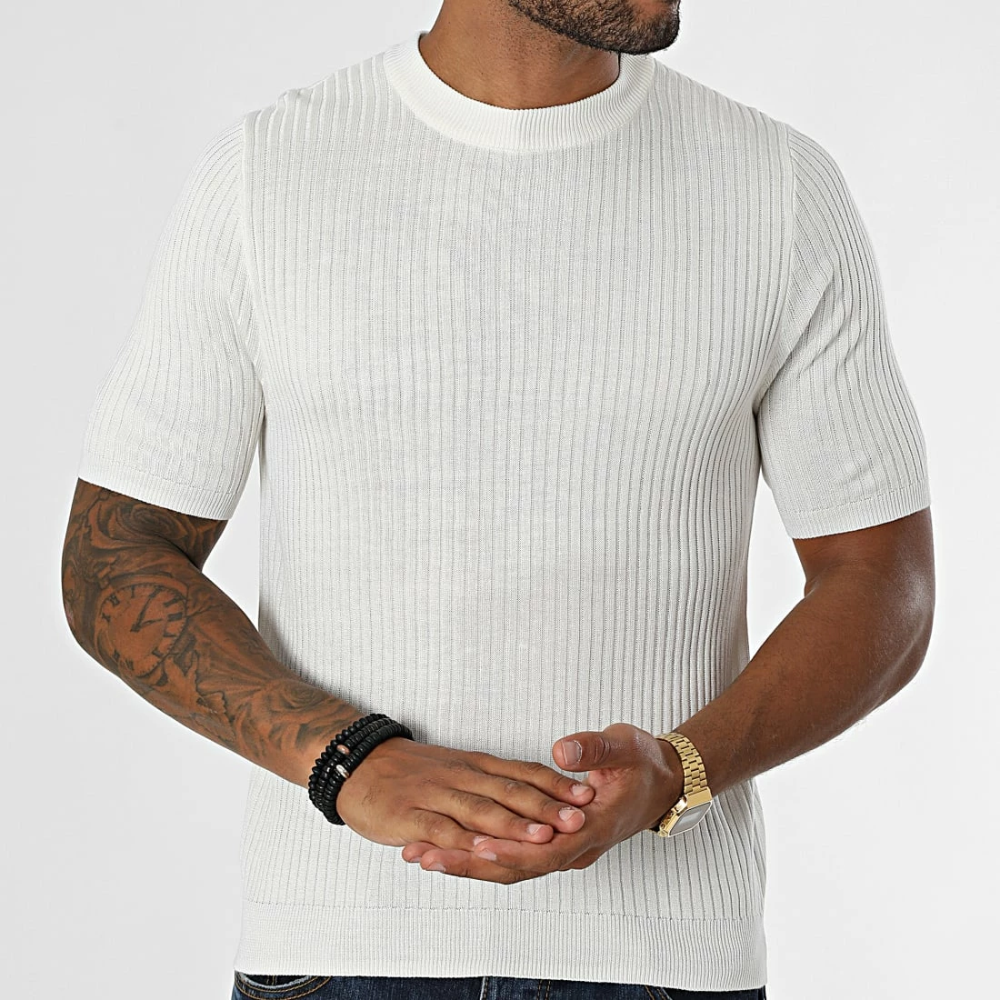 • Tee shirt près du corps en maille fine côtelée