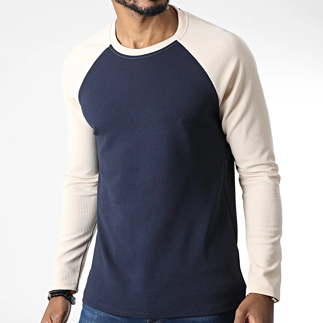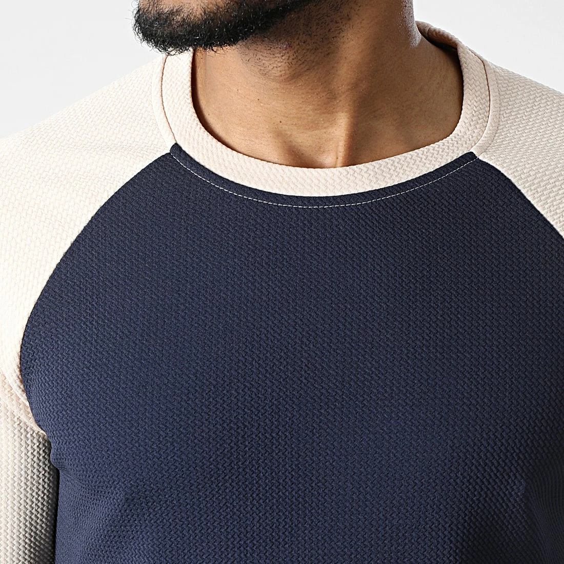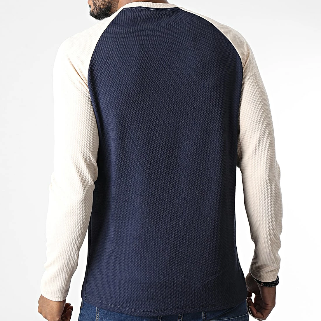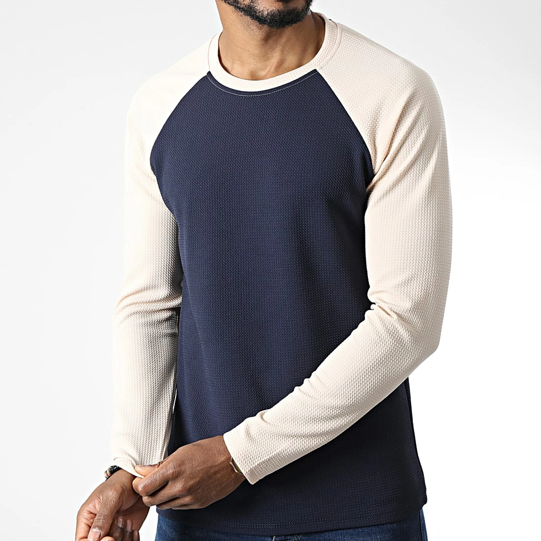 Meilleur prix ✨ Tee 👕 Shirt Manches Longues 6571 Bleu Marine Beige de Frilivin 👍