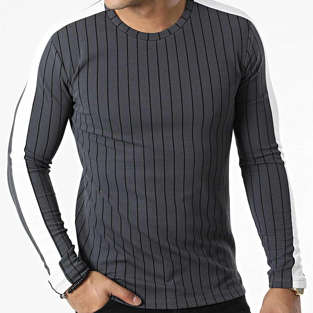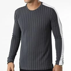 Sortie ⌛ Tee 👕 Shirt Manches Longues A Bandes Et Rayures FL038 Gris Blanc de Frilivin 👍