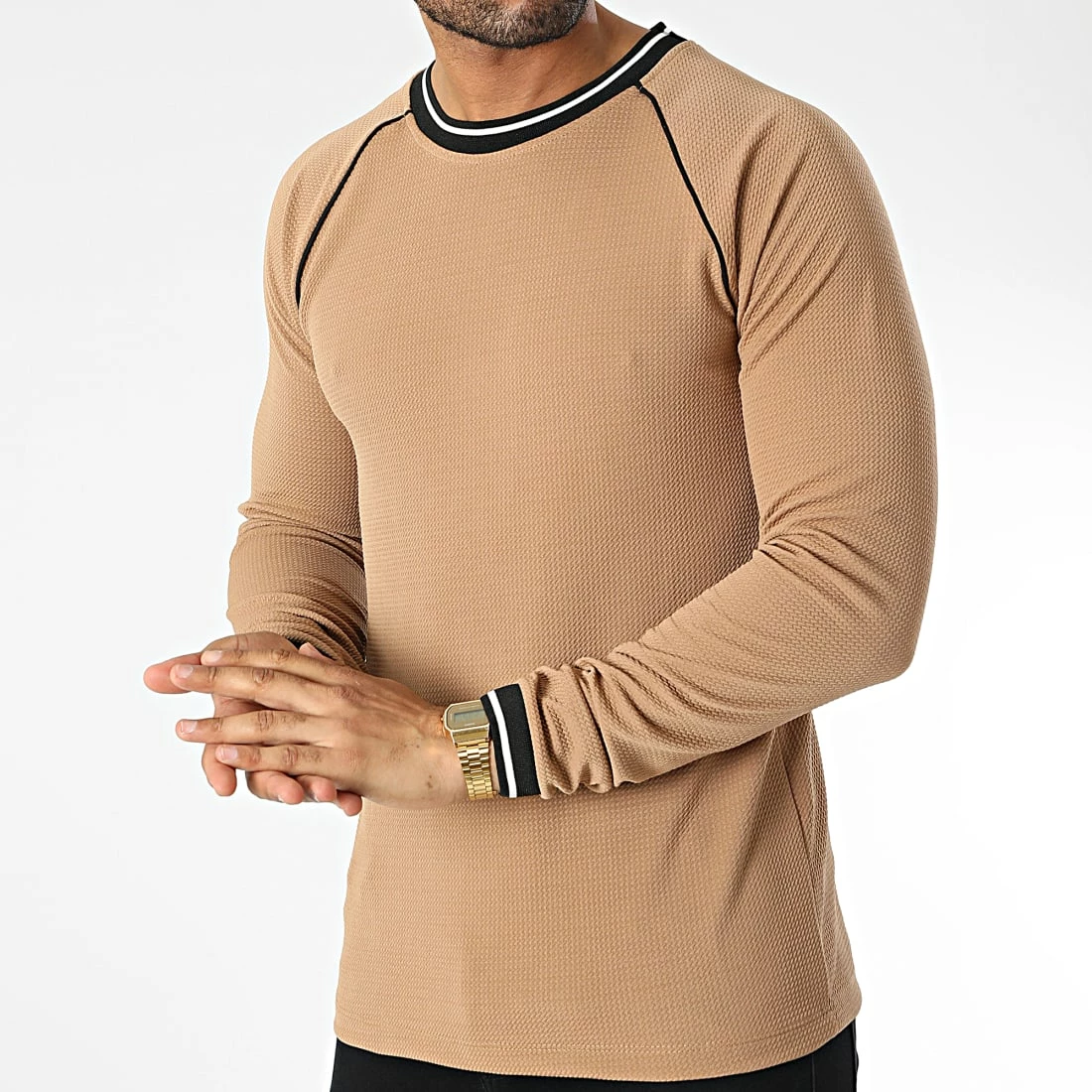 Vente flash 🎉 Tee 👚 Shirt Manches Longues D7408 Camel de Frilivin 🥰
