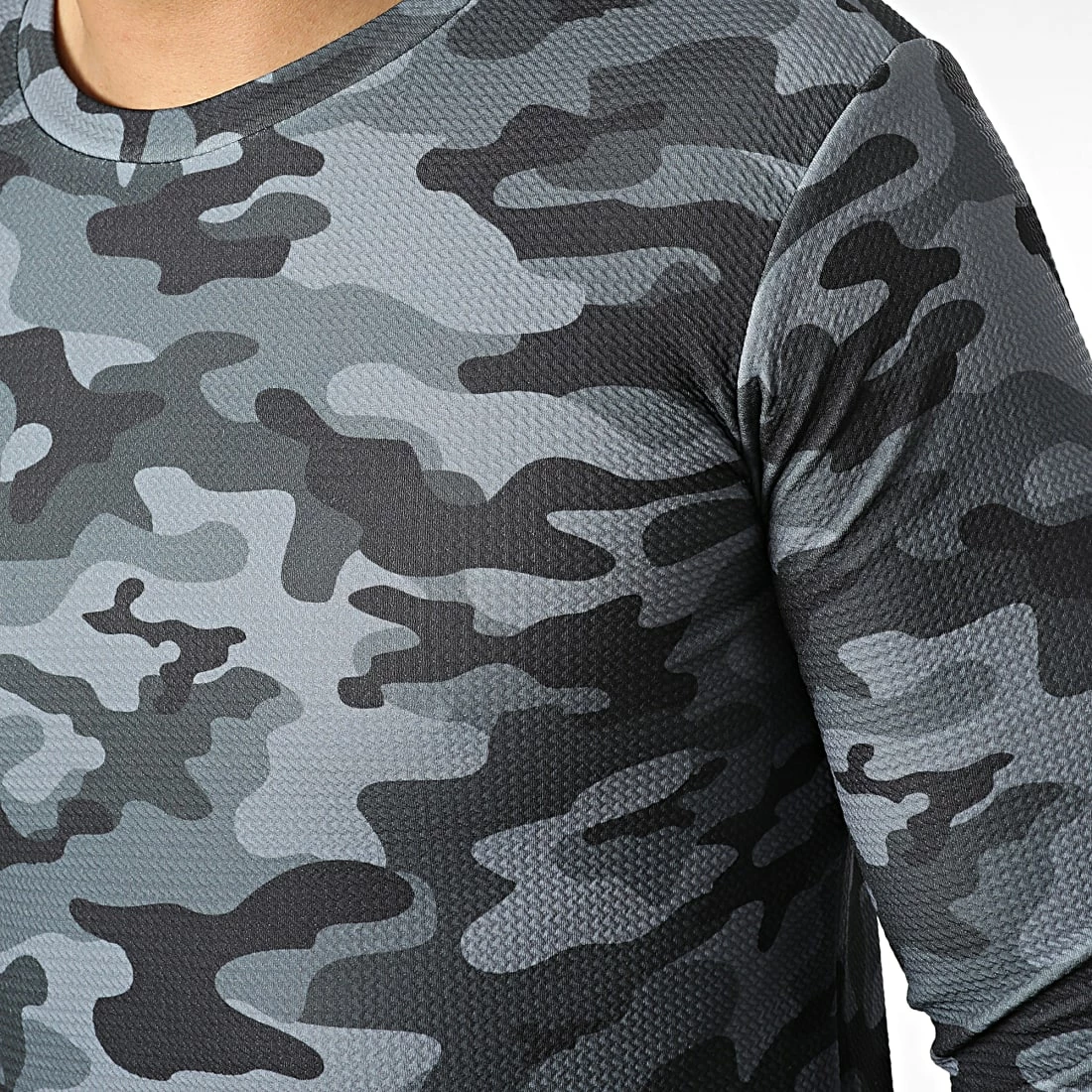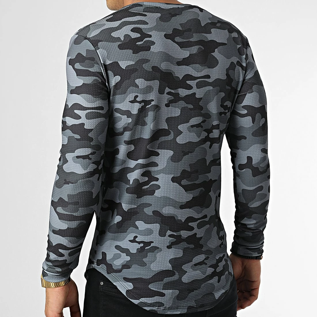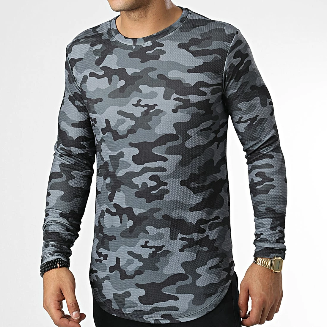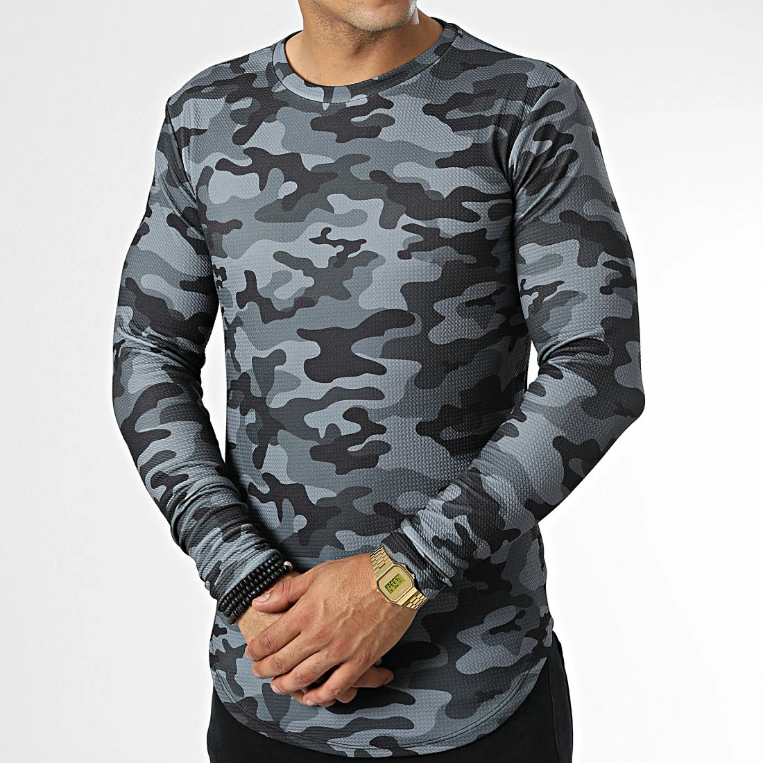 • Tee shirt à manches longues tendance avec motif camouflage imprimé all over