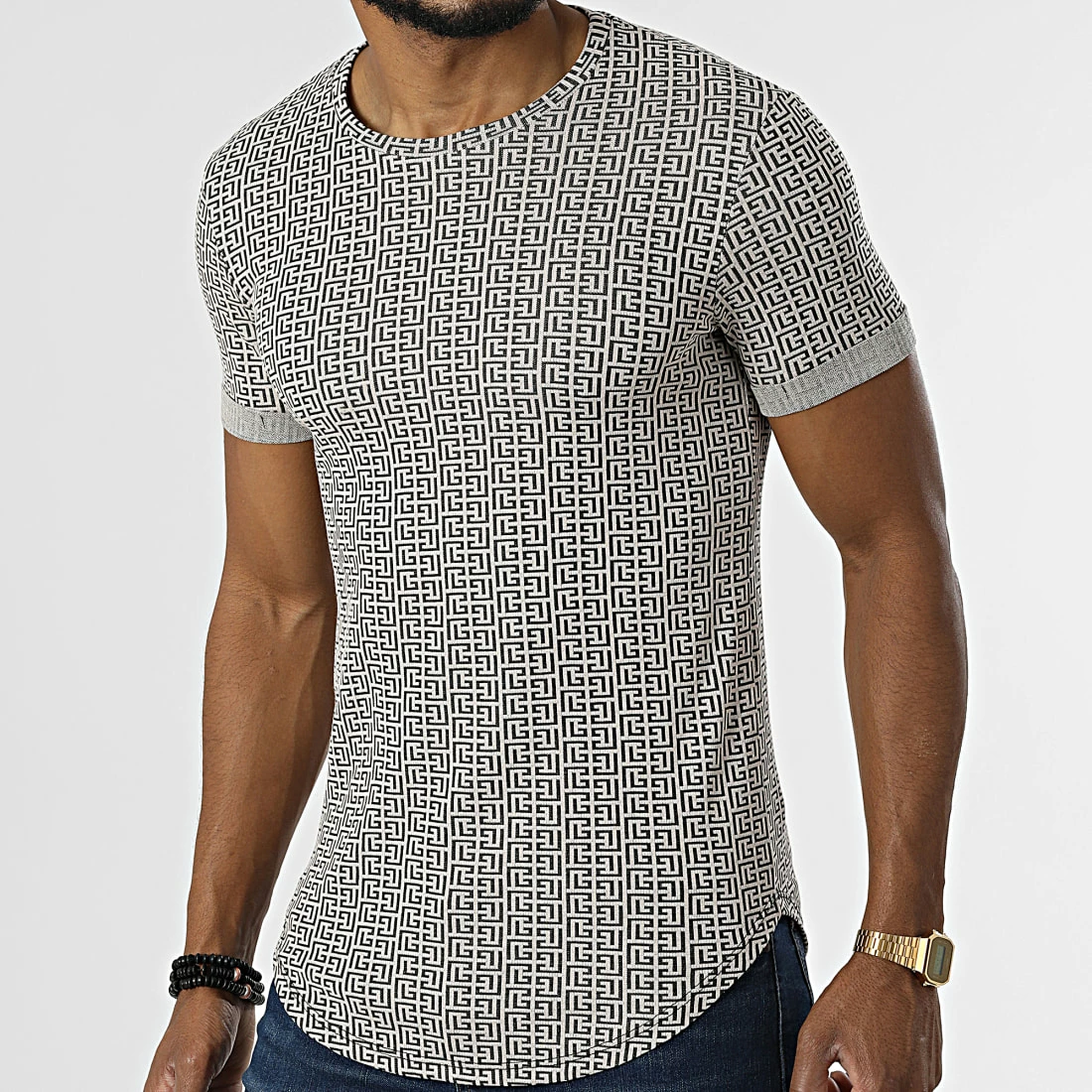 • Tee shirt oversize tendance avec motif ton sur ton brodé all over