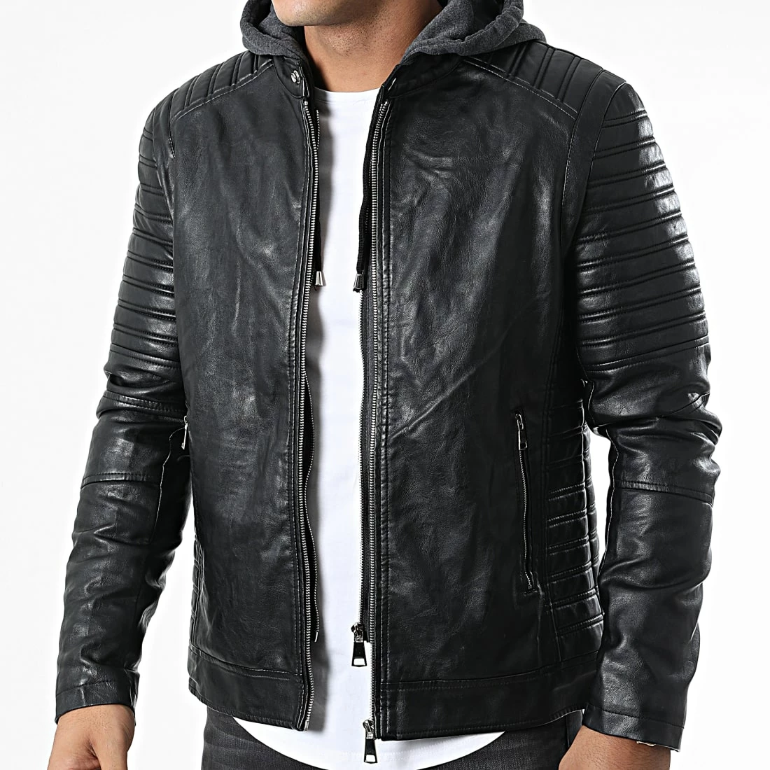• Veste biker tendance avec doublure en fourrure synthétique douce amovible