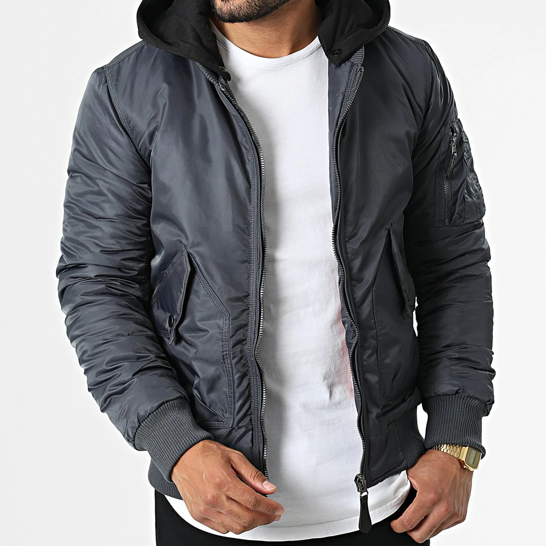 Tout neuf ❤️ Veste Bomber Capuche AB6658 Gris de Frilivin 🔔