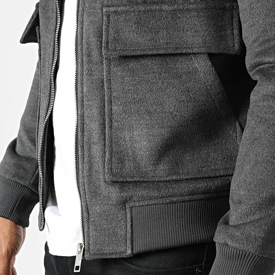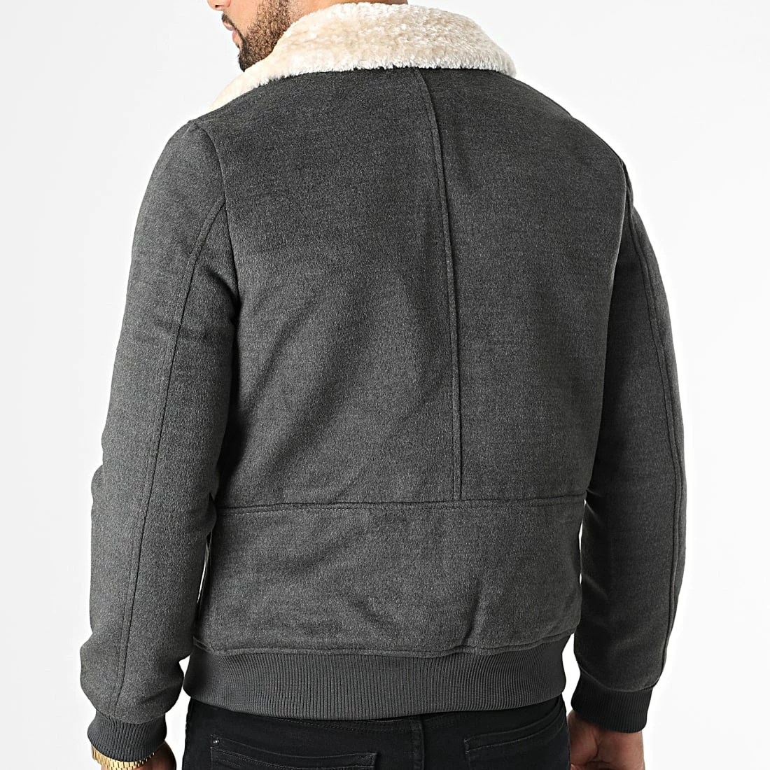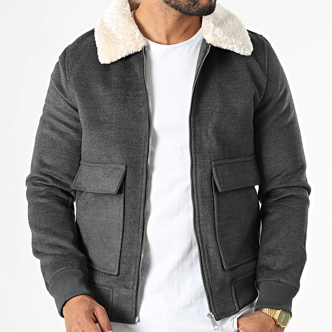 Promo 👍 Veste Col Fourrure QQ1603 Gris Anthracite Chiné de Frilivin 🔥