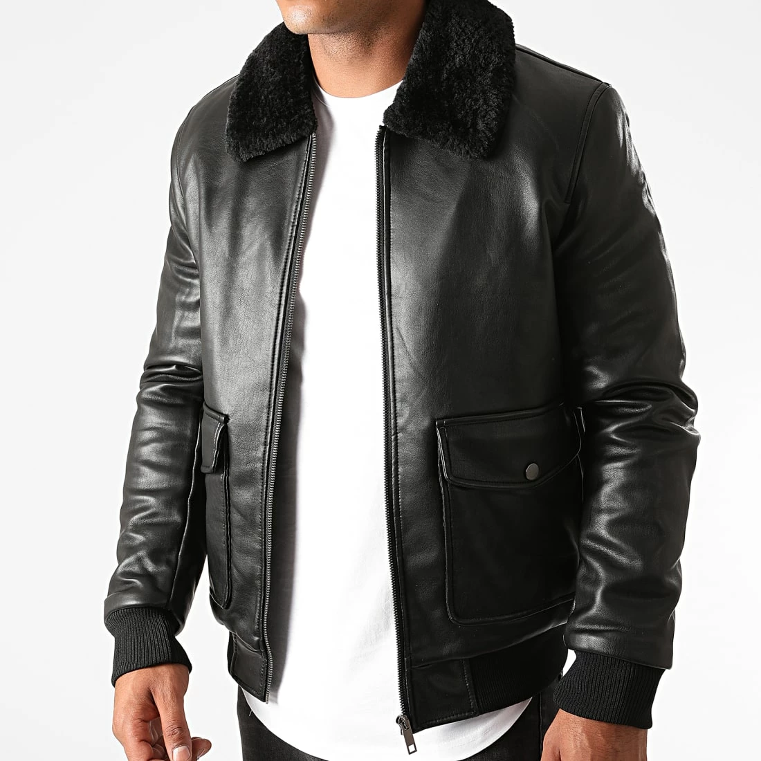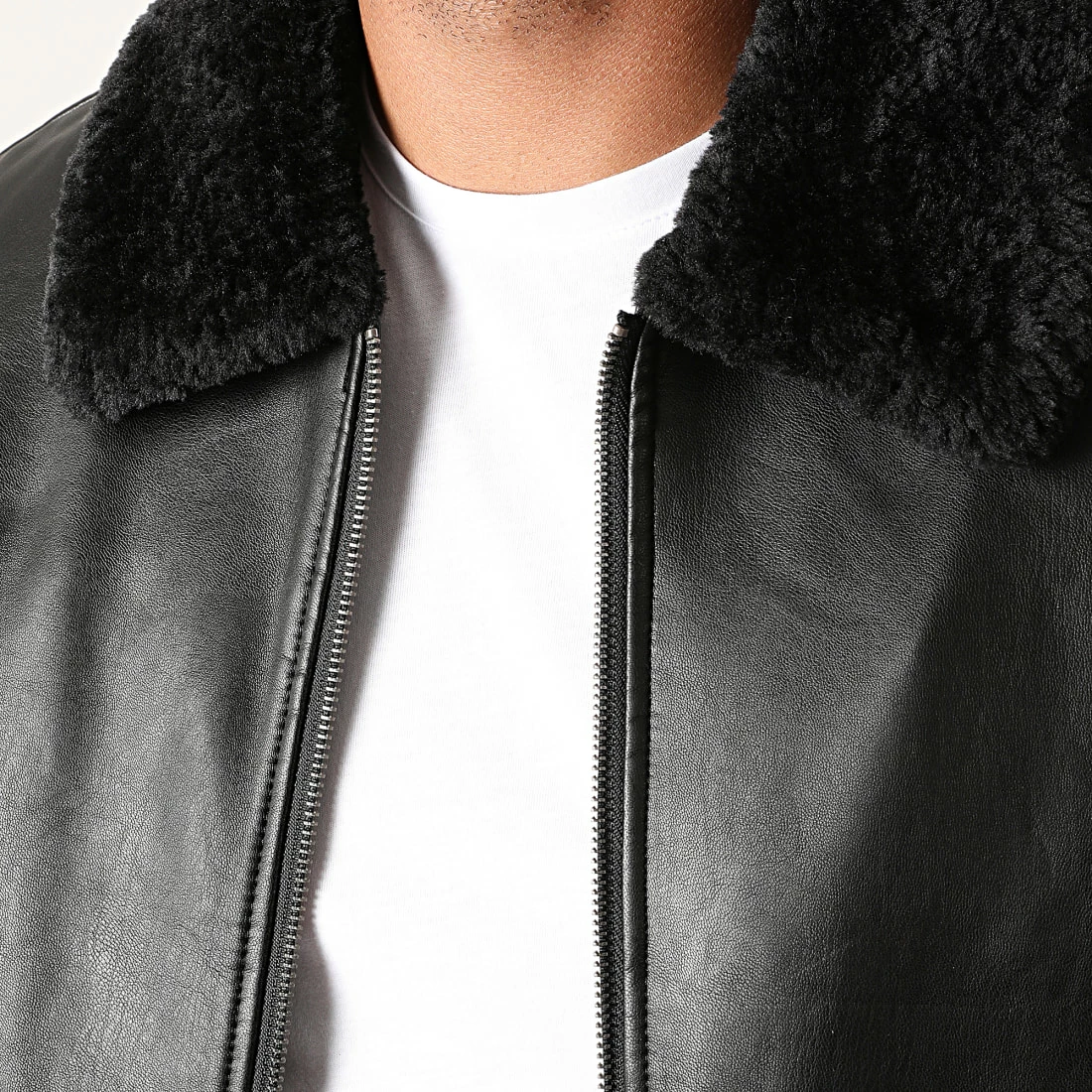 • Veste zippée aspect cuir retourné avec col sherpa