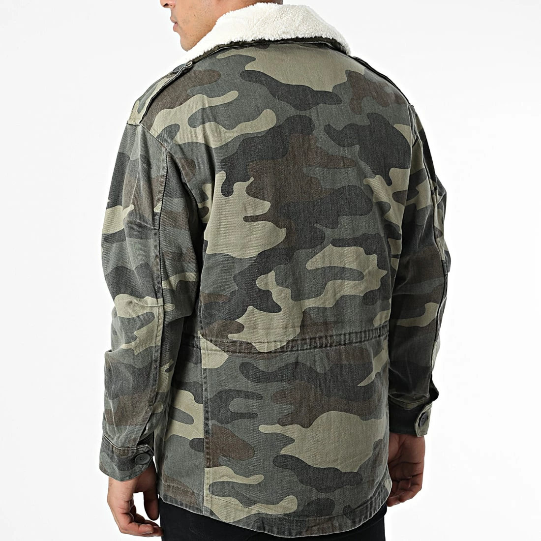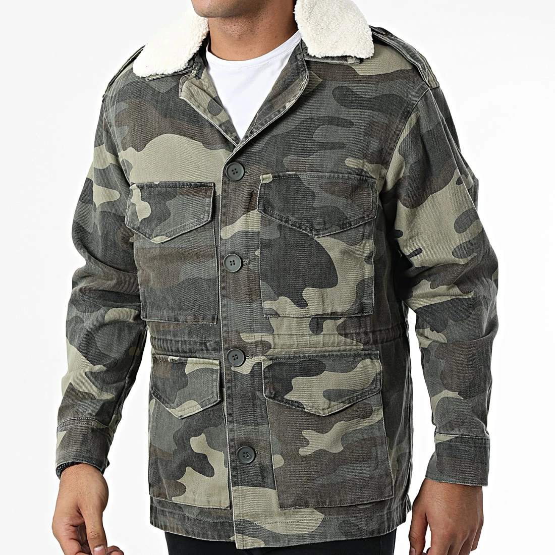 • Veste en jean épaisse à col mouton amovible et motif camouflage
