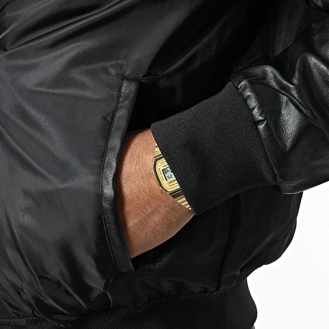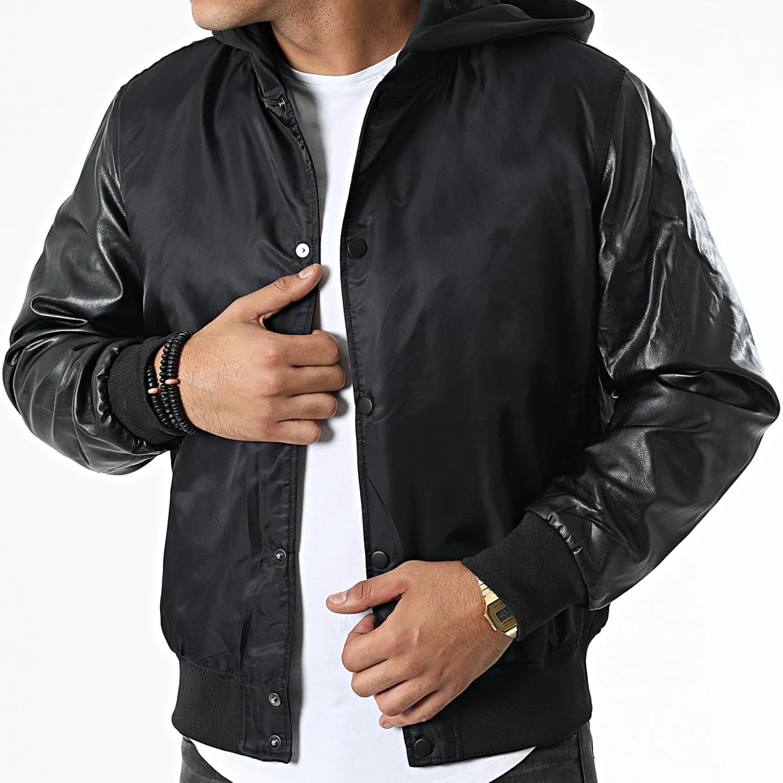 • Veste teddy à capuche style baseball avec manches aspect cuir