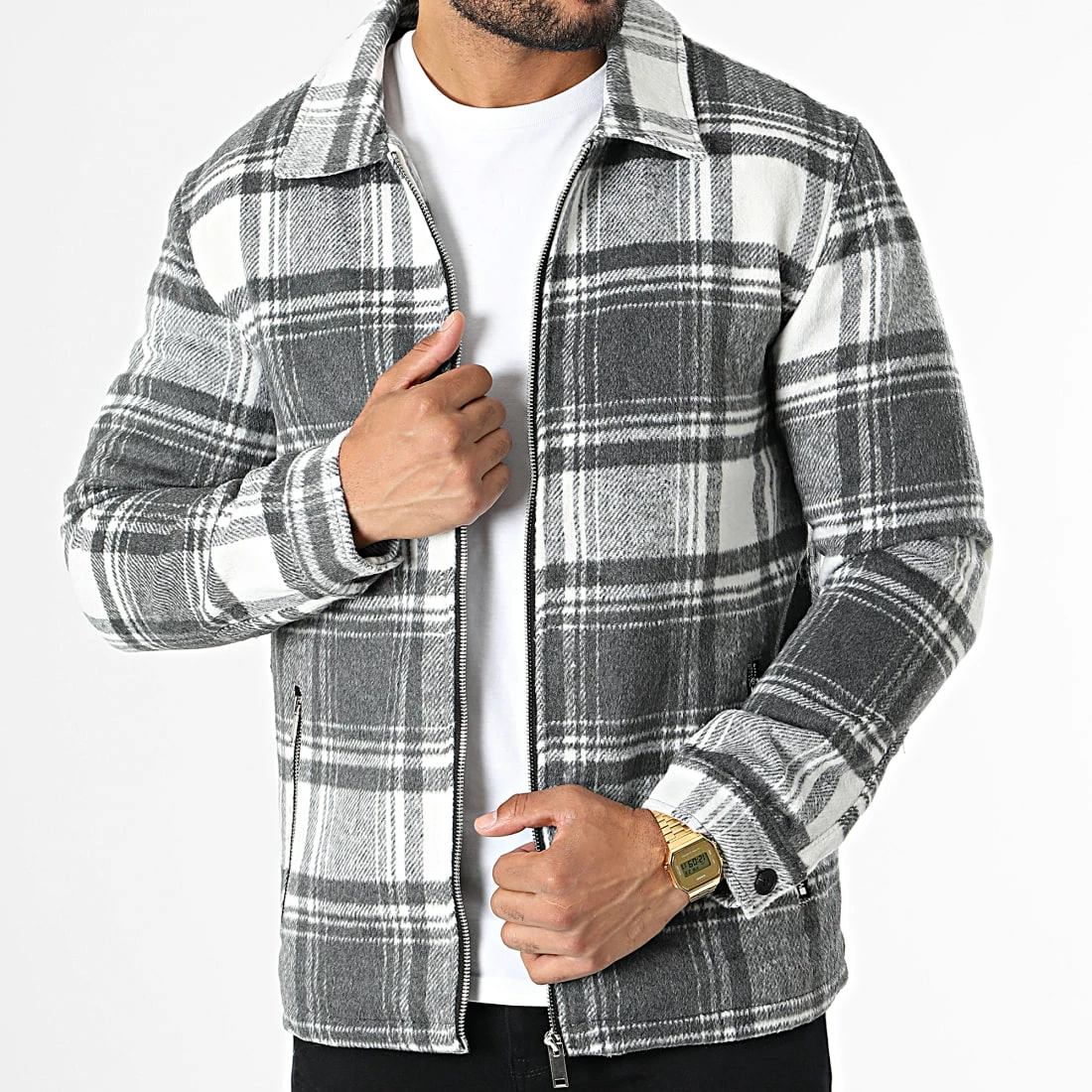 • Veste zippée tendance avec motif à carreaux all over