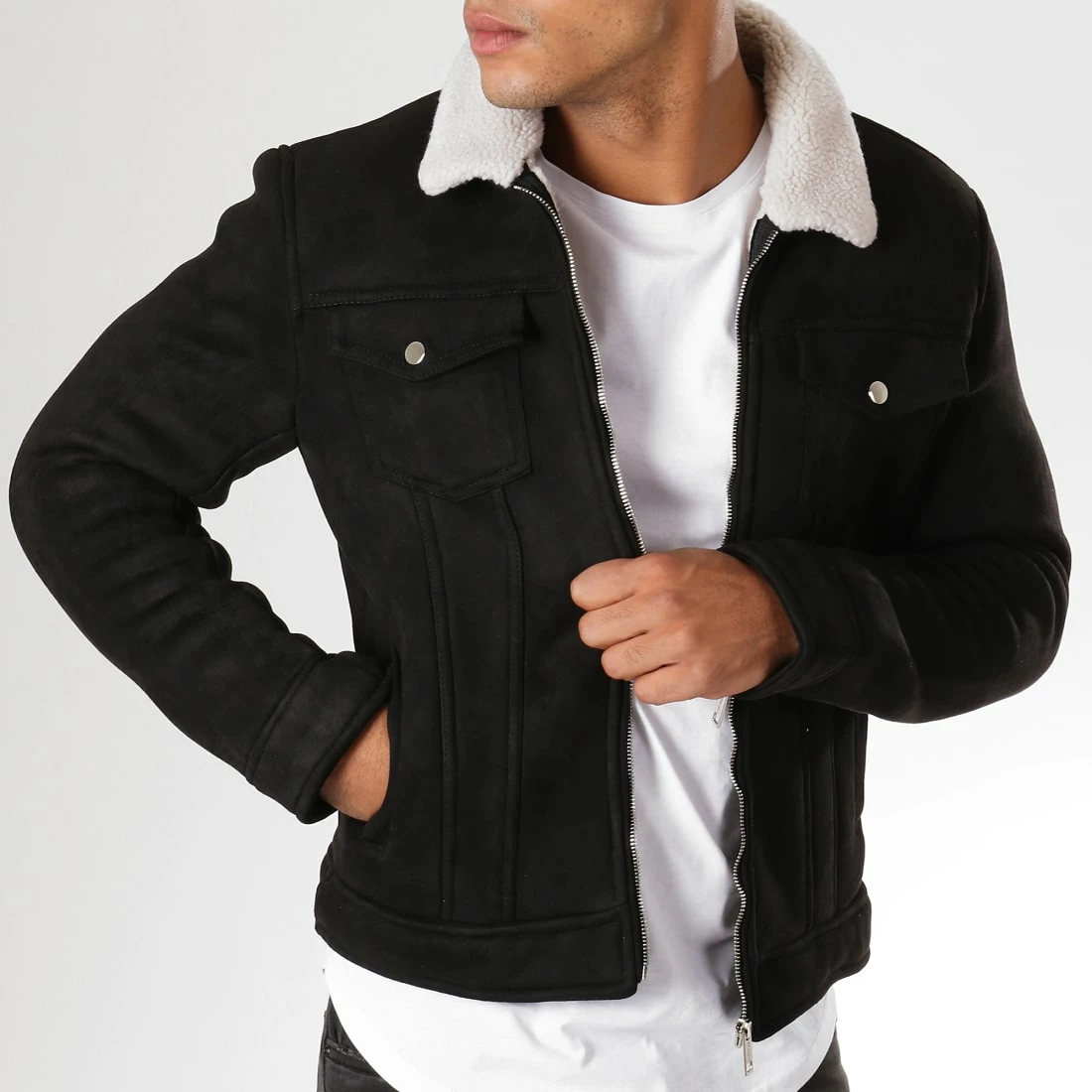 • Veste aspect daim à col mouton